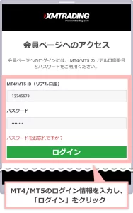 パスワードはXMtrading(エックスエム)公式サイトに登録した際にご自身が任意で決めたパスワードです。